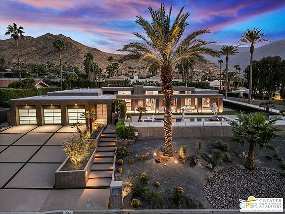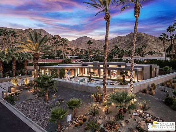 Welcome to your dream home, in Andreas Hills! Nestled on an extemely private elevated corner lot, this exquisite gated contemporary residence offers a perfect blend of luxury, comfort, and breathtaking views. With 4 spacious bedrooms, 4 elegant bathrooms (one used as an office with built-ins, and two stylish powder rooms, this property is designed for both entertaining and everyday living. As you step inside, be greeted by an abundance of natural light flooding through large windows, showcasing the stunning PS views, dramatic hills and windmills beyond. The expansive open-concept living area seamlessly flows into the gourmet kitchen, featuring top-of-the-line appliances, sleek cabinetry, and a spacious double island perfect for gatherings. Imagine hosting unforgettable soires while your guests admire the mesmerizing sunset views from the covered patio with ceiling heaters. Retreat to the luxurious primary suite, boasting direct access to the blue tiled pool / spa where you can soak in the serene ambiance. Master suite also includes a secondary laundry hook ups and two water closets. One with bidet and the other with urinal. Each additional bedroom offers ample space and exquisite finishes, ensuring comfort for family and guests alike. The outdoor spaces are just as remarkable, with beautifully landscaped gardens and multiple soothing fountains, providing the ideal backdrop for alfresco dining or relaxing under the stars. With a prime location that balances privacy and accessibility, you'll enjoy easy access to shopping, dining, and all that the desert has to offer. All while coming home to your own slice of paradise. Don't miss out on this rare opportunity! Priced at $3,695,000, this impeccable home on FEE land is ready to welcome you into a lifestyle of luxury and elegance. Schedule your private tour today and turn your dream into reality!