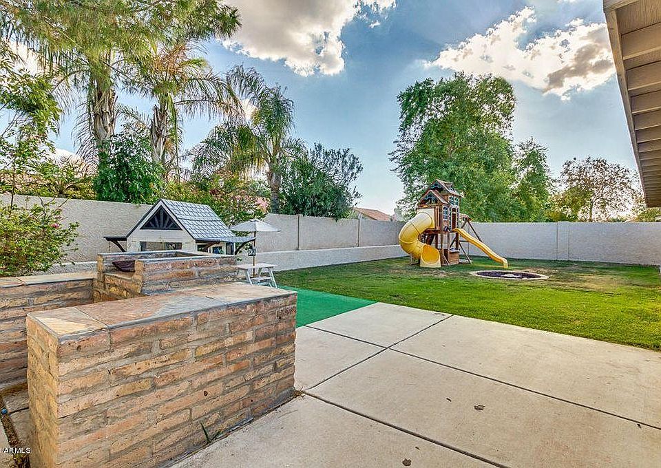 This light and airy 3 bedroom 2 bath home in highly sought after Chandler is just what you've been looking for! Move-in ready with NO HOA!! This home has been updated with neutral light paint throughout, granite counter tops, stainless steel appliances, french doors all around, and gorgeous vinyl plank flooring in all of the bedrooms. The living area boasts amazing vaulted ceilings. Ceiling fans and blinds install throughout the home. Spacious master bedroom with walk-in closet with adjoining master bath featuring oversized bath/shower with his & her sinks. The large backyard is perfect for entertaining with a built-in brick BBQ, fireplace, large wooden play-set and covered patio extended the length of the home. Grass in both front & back with N/S exposure and 2 Car garage rent 1750 deposit 1750