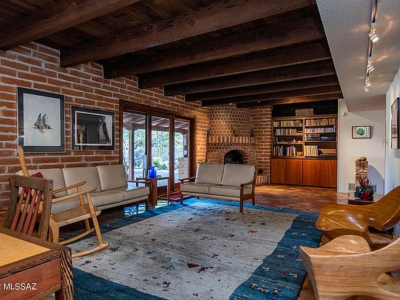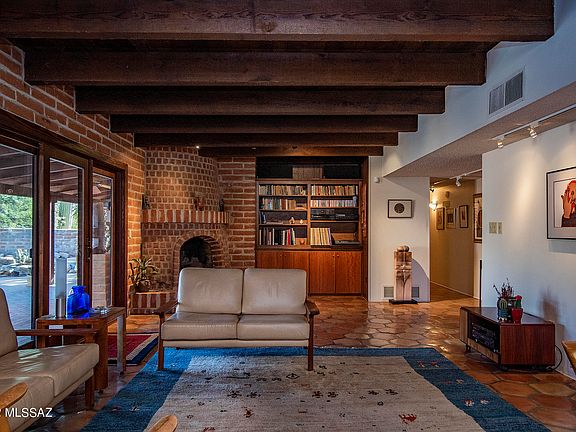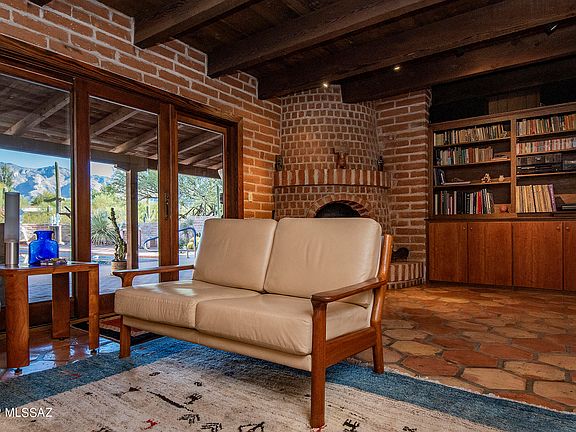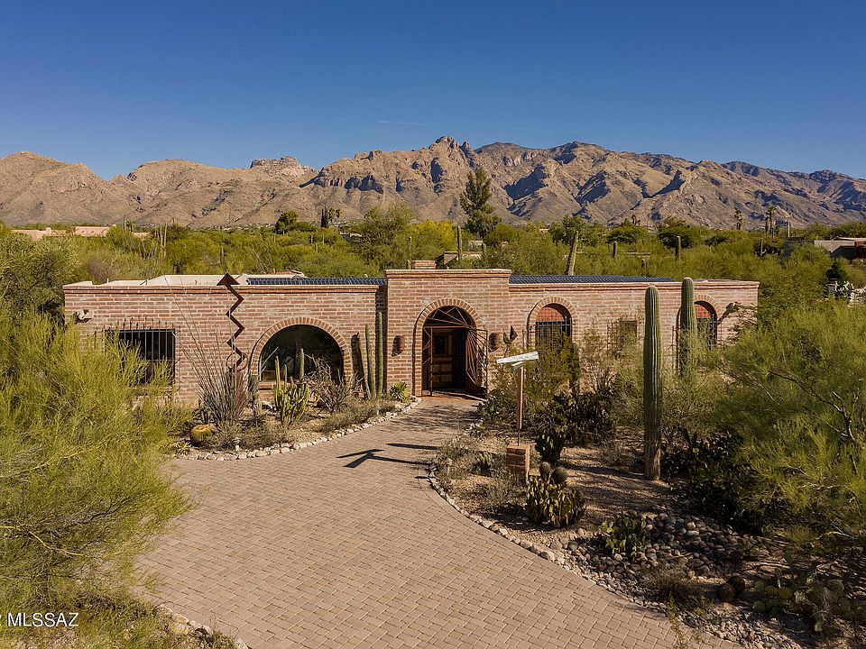 VERY CHARMING 3 bedroom (plus studio/workshop) burnt adobe in the heart of Catalina Foothills Estates #7! GORGEOUS wood beams, warm hexagonal saltillo tile floors & special adobe beehive fireplace. Large elevated corner, cul-de-sac lot w/ long paver driveway & perfect north/south orientation! Updated wood sliding doors lead to wonderful covered brick patio overlooking large sparkling pool & very low maintenance backyard. Many unique details & AUTHENTIC architectural features: lovely stained glass windows, exposed adobe walls, detailed wrought iron doors, built-in wet bar & bookshelves, numerous arches & skylights. Prepaid solar lease. This one owner home is INCREDIBLY PRIVATE, has GREAT VIEWS & has been lovingly maintained. MOST DESIRABLE neighborhood & location! A HOUSE WITH A SOUL!