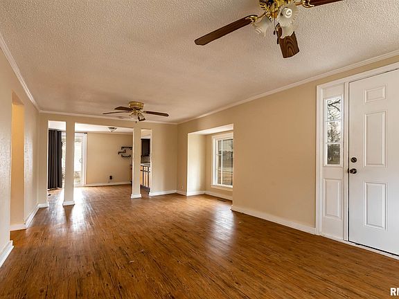 Newly remodeled 2 bedroom/1 bath bungalow in a desirable West Frankfort neighborhood on a corner lot! This home just had beautiful new floors installed throughout the entire house. The house was also completely repainted inside. The roof was replaced on the house AND the garage in 2020. The current owner also put up all new light fixtures and ceiling fans, a new kitchen countertop, new blinds, new doors, and a new garage door. You can feel the original charm when you walk up to the front porch and into the large, open living area/kitchen. This home has original tray ceilings, columns, and built-ins. The master bedroom has a great walk-in closet. You'll be pleasantly surprised at the size of the bathroom. Lots of storage in the detached garage. Plenty of space for your car, toys, and belongings! Come see it today. It's move-in ready!