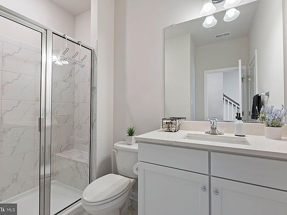 NO NEED TO WAIT TO BE BUILT--THIS RESALE IS AVAILABLE NOW! This grand townhome in East Quarter offers 4 bedrooms, 3 full and 1 half baths with a 1st floor bedroom/office and 2nd level open floorplan with lots of natural light. Stunning open 2nd level floorplan includes a center kitchen with 10' island, quartz countertops, 42 inch cabinets with slow close drawers and stainless steel gourmet appliances. Beautiful engineered hardwood floors on all three levels. The primary suite offers a large walk-in closet, a luxurious glass enclosed shower and double vanities. The rear of the home offers a spacious 10'x20' deck which overlooks open space (rather than neighbors) and an oversized 2 car garage. Energy efficient windows, a 90+ furnace, energy saver appliances and led lighting throughout for energy/utility savings. This new community has a great, centralized location that places homeowners near everyday conveniences, commuter routes, and top employment centers in the area. Popular stores including Costco, Target, Home Depot, and Walgreens are all within 5 minutes of East Quarter, making daily errands a breeze. Additionally, this community is right off of the Leesburg Bypass allowing for convenient access to HWY 15, I 267, and I 7. Living in this community means being 10 minutes away from popular employers such as Sprint, Oracle, and Lockheed Martin in Reston and Chantilly, as well as just 20 minutes from Booz Allen Hamilton and Capital One in McLean, Tyson's Corner, and Vienna. Future planned amenities including a community gathering area, seating area, gazebo, and tot lot make this an ideal space for growing families. Don't miss out on this nearly new resale townhouse that is move-in ready and with no long wait time for 'to be built' new construction! VA BUYERS TAKE NOTE--you may be able to assume the existing loan with rate (5.625%) that is around 1.25% lower than the current VA market rate!
