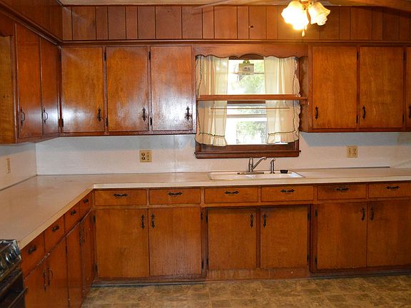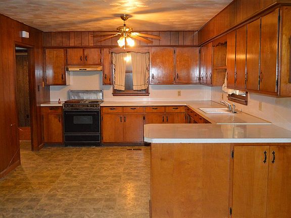 This home features 3 bedrooms, 1.5 baths with a 2 car attached garage. Coming in the front door, you come into an enclosed front porch for a nice sitting area. Off of the front porch you enter into a large living room area with two ceiling fans and an open floor plan and a bookcase. Two bedrooms are off of the living room. One of the bedrooms features a small sitting area or extra storage area off of the bedroom. The bedroom features a closet and extra storage over the closet. The second bedroom is off of the other side of the living room and has large closet space. There is also a half bath off of the living room. Entering into the kitchen you can have a dining room with an open concept of the kitchen. The kitchen has an abundance of cabinet space. The home continues on down a hallway and at the end contains a Linen Closet the third bedroom that has a built in desk and a closet with built-in book shelves. The full bath has a tub/shower combination. There is also a nice sized utility room for washer and dryer hookups. The family room has carpet, wood burning stove and a door to the outside. The family room also has a door to the two car attached garage. Inside the garage, it has concrete floors, a garage door opener, door to the side yard area and built in cabinets for storage and tools.