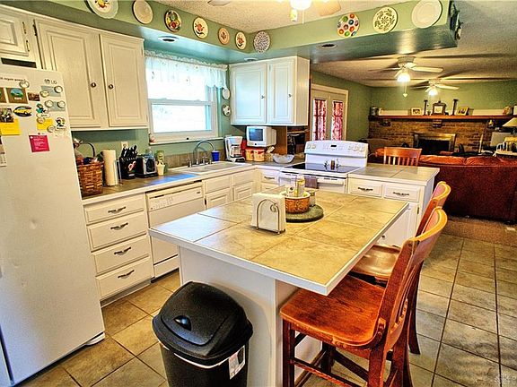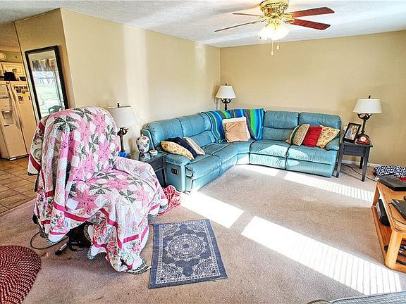 Welcome home to that new perfect sized home....Sellers have made improvements to open the floor plan...wall taken out in the entry and ceramic tile added....Wall removed from Dining Room to Kitchen for that light and airy, open feeling that flows into your family room with French Doors to a delightful patio...great to enjoy now that the weather is warming up! Kitchen offers ceramic tile countertop on main cabinets as well as on the island....Furnace and A/C just a few years old....water softener and kitchen appliances stay with the home...Master Bath updated with Ceramic Shower, new vanity, countertop, mirror and lighting...Hall bath provides fiberglass surround...newer countertop, lights and mirror as well...Storage Shed! Paddle fans in most rooms! Roof approx 6-7 years old...one level living at its best! Chimney/fireplace not used, not warranted...information believed correct, please make you own inspections..Needs a little TLC..has great potential