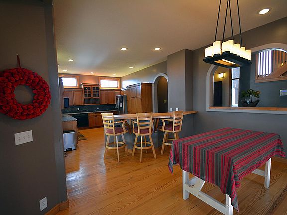 Fantastic Master bedroom suite. Vaulted ceilings. Gas fireplace overlooking golf course & with separate sitting rooms+ exercise area. Walk-out basement off dn family area & one bedroom. NICE mainfloor office. Exciting maple cabinetry in exceptional kitchen w/granite countertops,Bosch dishwasher. Shades in windows remain as is. DA garage is finished.