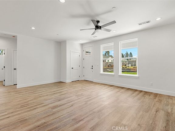 - Ceiling Fan(s), Eat-in Kitchen, Open Floorplan, Quartz Counters, Recessed Lighting, Unfurnished, All Bedrooms Down, Bedroom on Main Level, Main Level Primary, Walk-In Closet(s)