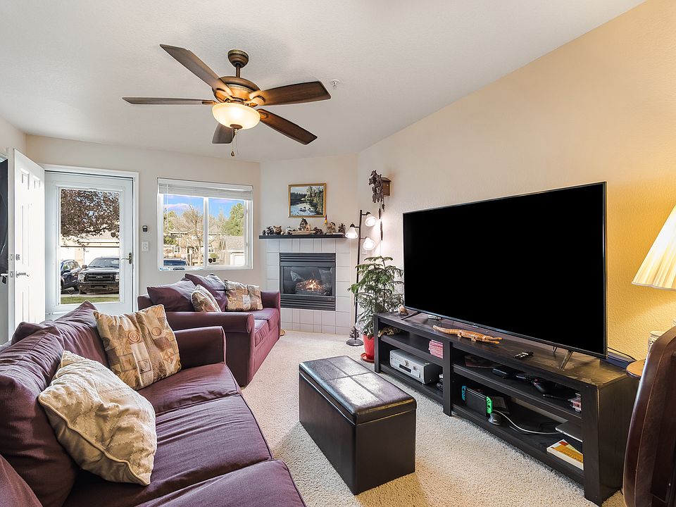 Make your way through the front entryway, you'll be greeted w/ an abundance of natural light that floods the living room, dining room & kitchen area. Kitchen includes electric stove, convection oven, microwave, dishwasher, garbage disposal, refrigerator with water filter and ice maker, and a small screen to watch TV while preparing meals. Snuggle up in the large living room area and enjoy the gas fireplace. A semi-private patio is just off the main level where you can enjoy the beautiful Colorado evenings.