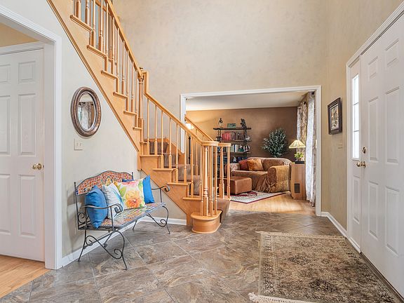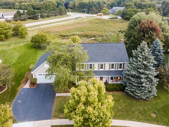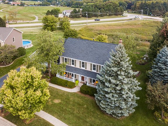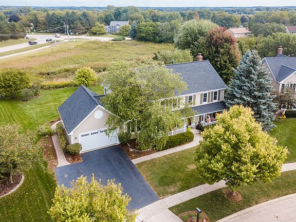 Gorgeous home on premium lot w/ fantastic views of open space! 4 bed, 3 baths. Almost 3000sqft of living space! Owners have invested a lot in major updates & improvements over the years. Newer roof/siding, windows, & more. Welcoming front porch greets you as you step inside to the 2 story foyer. Hardwood floors throughout. Large dining rm. w/ chair rail & crown molding leading to huge kitchen boasting ample cabinet & counter space. Nice size eat in area w/ slider to large deck overlooking yard. Large family rm w/ brick fireplace. Upstairs you'll find a spacious master suite w/ remodeled master bath- exec. ht. custom double vanities w/ granite tops & custom tiled walk-in shower. Bedrooms 2-4 are generous size too. Huge unfinished walk out basement w/ patio under deck. Meticulously landscaped yard with stone terraced steps & lush plantings. Only minutes to shopping and access to I90. Just a terrific neighborhood and location! Truly a must see!!