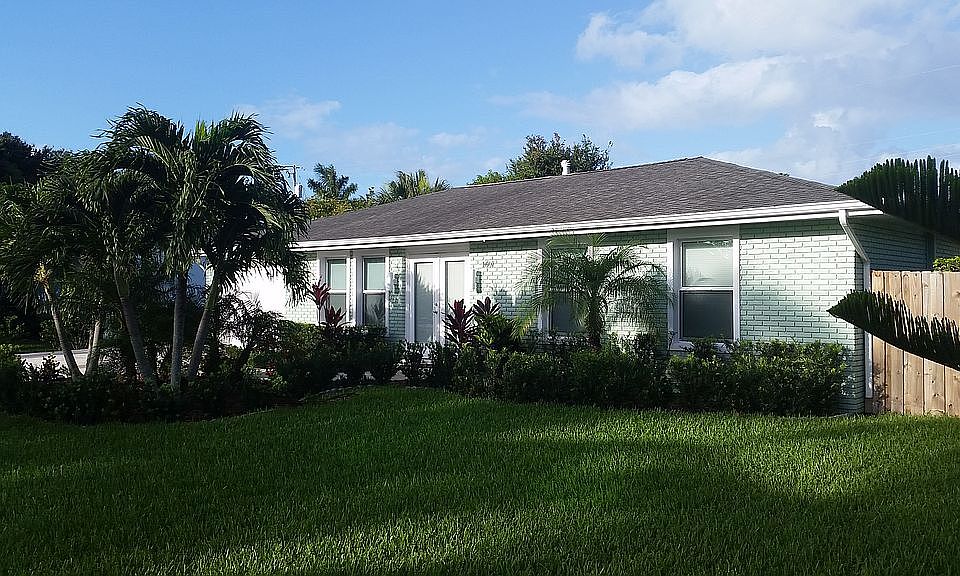 Just Reduced! Charming 3 bedroom 2 bath brick home, wood floors throughout, large fenced in yard with wood storage shed. Boat/RV parking on the side of the house. Located on a beautifully maintained street in Jupiter in the Pines. No HOA fees! Sold as is, in need of repairs.