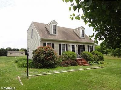 Only 15 minutes from Short Pump! Well maintained Cape with 2.5 Acres! Large first floor master with walk-in closet! Living room with hardwood flooring. Spacious kitchen with pantry and attached laundry room. Private rear deck. Huge 12X30 storage/work shed with electricity. Peaceful country living with cable, internet, and convenient to Short Pump shopping!