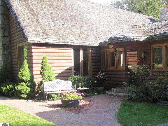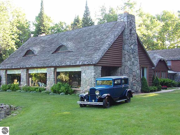 Take a walk back in time with this property steeped in Clare history! Beautiful well maintained home with over 4500 square feet of living space situated on 13 acres along the Tobacco River in the Clare City limits. This is a one of a kind home with the best of all worlds rolled into one. With several barns and additional outbuildings, there are so many possibilities awaiting it's new owner. Once inside the home, you'll be captivated by the elegance and spaciousness of the large open concept dining/living room area. Formal dining room has it's own cut stone fireplace, as does the sunken living room. The living room opens to a magnificent enclosed front porch with cypress siding, skylights and large windows overlooking the pond. Continue through the home, and you'll discover a fabulous family room with another stone fireplace, cypress paneling, and a wet bar perfect for entertaining guests. Meander down the hall and you'll discover 2 large main floor bedrooms; you'll also discover a Jacuzzi room with a sunken hot tub and a beautiful stained glass window depicting the home and property. The large master suite is complete with walk in closet and master bath suite. If this weren't enough, there's an approximately 792 square foot apartment over the garage well suited for hobby room, office, or that often needed guest suite. The original structure was constructed approximately 80 years ago, and is rumored to have been a hide out for the infamous Purple Gang. Home was completely rebuilt in the 1970's. The roof is very unique, in that it is a "Thomas Kincaid" inspired thatched roof. Truly one of a kind. There's so much more to this home; possibilities seem endless. This is a "cool deal" !!