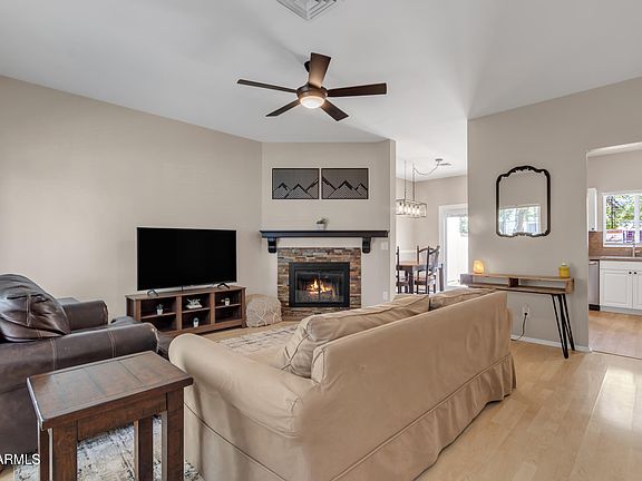 Welcome to 1601 N Saba Street in Chandler, a stylish and comfortable townhome perfectly positioned between Downtown Chandler and Downtown Gilbert. This 2 bedroom, 1.5 bath home features 1,200 sq ft of well designed living space. The open concept first floor includes a spacious living room with a cozy wood burning fireplace, a bright dining area, and a modern kitchen with an island and plenty of storage. Sliding doors lead out to your private patio, creating the perfect setup for morning coffee or evening get togethers. Upstairs, you'll find two generously sized bedrooms, a full bathroom, and a convenient laundry area all thoughtfully arranged to maximize comfort and function.