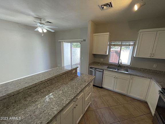 Discover this charming townhome in Chandler, bordering Gilbert, near the Islands community. Enjoy the benefits of fresh interior paint and no carpet. Ceramic tile downstairs and brand-new luxury vinyl plank upstairs. The kitchen boasts plenty of cabinets, granite counter tops and a breakfast bar. The renovated upstairs bathroom adds modern flair. The primary bedroom offers two closets, while the second bedroom has a walk-in closet. Both bedrooms are spacious and feature vaulted ceilings. Relax on the private back patio with access to a scenic walking path. Parking is convenient with one covered spot and ample open parking nearby. Take a dip in the community pool just steps away. Don't miss this opportunity!