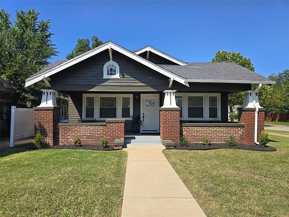 Nestled in the heart of the vibrant Military Park neighborhood, just minutes from downtown Oklahoma City, this beautiful completely renovated historic home offers the perfect blend of classic charm and modern comfort. Thoughtfully updated throughout, the home features three spacious bedrooms—large enough for king-sized beds and all offer ample closet space and inviting, stylish decor. The refurbished open-concept layout creates an effortless flow from the living area to the modernized kitchen, which boasts a large island with barstool seating, stainless steel appliances, modernized cabinetry with granite countertops creating the ideal area for both casual meals and entertaining. Both custom renovated bathrooms are spacious, stylish and offer plenty of storage. Outdoor living is just as enjoyable, with a charming front porch perfect for morning coffee and an expansive back patio made for evening relaxation. Privacy and peace of mind are built in, thanks to a fully fenced backyard and commercial grade security gate providing private gated parking. Plenty of space to add a carport for covered parking or a garage for additional vehicle protection, additional storage or other uses, ie workspace, home entertainment space or additional living areas, leaving ample backyard for pool, play and/or pets. Other updates include professionally restored wood floors throughout, HVAC, PEX plumbing lines, electrical lines, foam insulation under the entire house, and roof replaced in 2016. Whether you're looking for a forever home or an investment opportunity, this property is move-in ready and perfectly positioned in a neighborhood known for its energy, accessibility, and community feel. Experience the best of both worlds—historical character paired with modern upgrades—all just a stone’s throw from the heart of OKC.