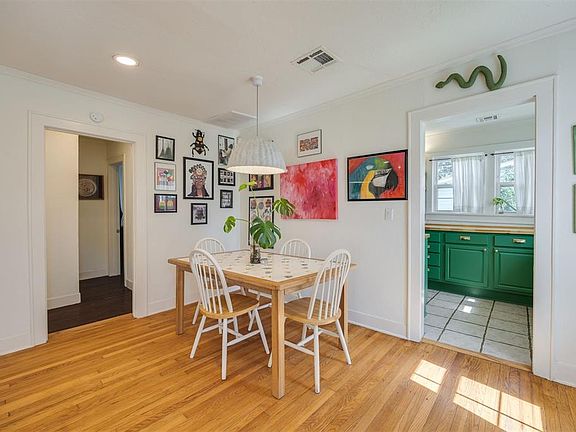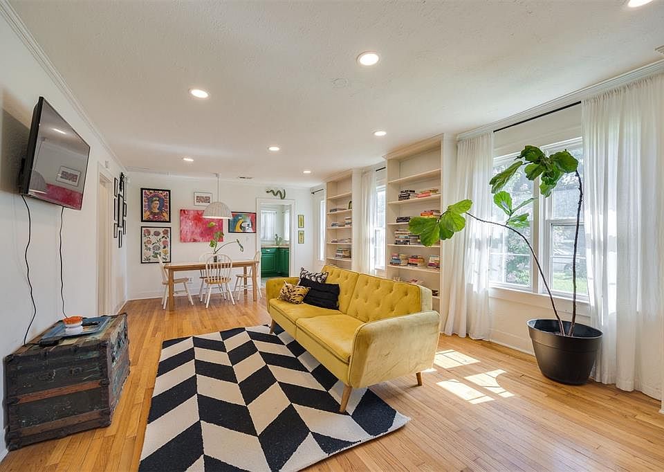 The most charming bungalow in the city! Upon entry, you will find a light and bright large living/ dining space with hardwood floors, ceiling to floor bookcases and recessed lighting. The updated kitchen with butcher block counters, subway tile, and windows makes for a delightful cooking setting. Updates include New HVAC, New Appliances, New Garage Door system, plus so much more attached to disclosures.