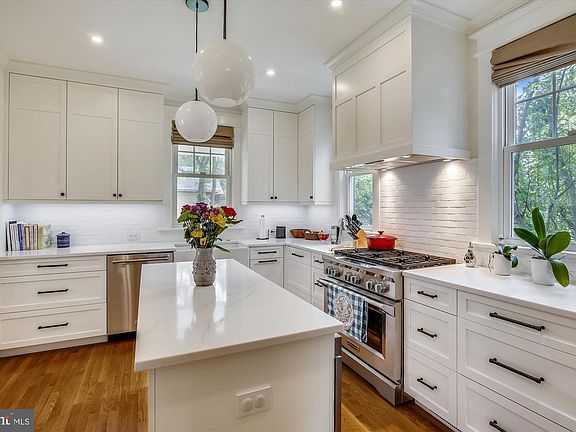 Come see this beautifully renovated Brookland house nestled on a large corner lot. Inside, you will find a thoughtfully designed gourmet kitchen featuring quartz counter tops, custom-made Shaker cabinetry, KitchenAid stainless steel appliances, enhanced under-cabinet and recessed lighting, and a versatile island. Gorgeous, new white oak hardwood floors on 3 levels. The half bath on the main level is a welcome addition. On the first upper level, you'll find 3 bedrooms and a new full bath, complete with 2 sinks, quartz and tile. The top level features another bedroom or home office. The lower level has unfinished storage and workshop areas, laundry, another full bath, and stairs to the back yard. Outside, try your hand in the vegetable garden, play in the big grassy areas, or lounge with a beverage on the wrap-around porch. From your front steps, the world awaits: go 6 blocks to Brookland/CUA Metro or catch the bus around the corner. Gardens, parks, schools, groceries, coffee, dining, ice cream, rec center, and more are within 7 blocks. This is a beautiful property. We hope to see you soon. Be sure to see the interactive floor plan.
