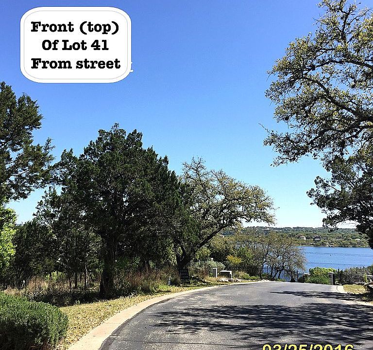 Beautiful Lake Travis Lot in Waterford Estates. Vacant Lot 41 at Waterford Estates Sec. 1 Lago Vista in North Lake Travis Area Gated Waterford Estates MUD water by city -- ready. (No septic) Municipal Utility Department Travis Electric -- ready / underground Utilities HOA -- 750$ a year Lake Privilages / Backed up to dry cove with little waterfall stream .83 acres. (little under one acre) Already have soil testing completed Trails /jogging/ walking / stone tables etc. maintained community Paved street and Gated Community Plenty of Wild life All around views of water -- On dead end loop -- lake in front Airport in Lago Vista for private aircraft Very Quite and Beautiful Homes / Neighborhood Travis County Some restrictions -- (home build must be minimum of 2700 sq. ft.) 2nd & 3rd homes in Waterford / very Quite !! Text RC at 5122468110