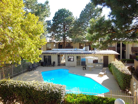 Updated Condo overlooking the pool! 7%-9% Potential CAP Rate Ideal investment in a coveted area of ABQ's Uptown! This 1-Bed 1-Bath condo w/ spacious walk-in closet overlooks the pool & courtyard. Updates such as granite counter tops, newer refrigerated air/central heat combo unit, new Classic Acacia vinyl plank flooring, new ceiling fans throughout, new ceramic tiles & new screen door on balcony! HOA covers all utilities, property taxes, grounds maintenance, & on-site security. Carport parking space & storage locker convey. Community has all year around indoor pool / hot tub, 3 outdoor pools, on-site laundry facility, clubhouse, & more! Catty corner to Winrock Mall, Regal Cinema, Chuze Fitness, & fashionista shops - Michael Kors, Banana Republic, Chico's, etc!