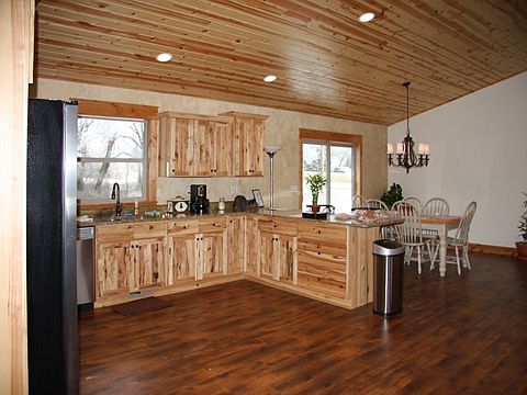 OPEN FLOOR PLAN - Solid rustic hickory cabinets with granite countertops. Cathedral knotty pine ceiling in the open living/dining/kitchen area, knotty pine doors and matching 6" trim throughout. Over-sized 30 x 30' garage with radiant heat. Stainless steel appliances included! Walk in closets, kitchen pantry, large utility room, walk out front porch and rear deck. Absolutely stunning. Neighborhood Description New subdivision