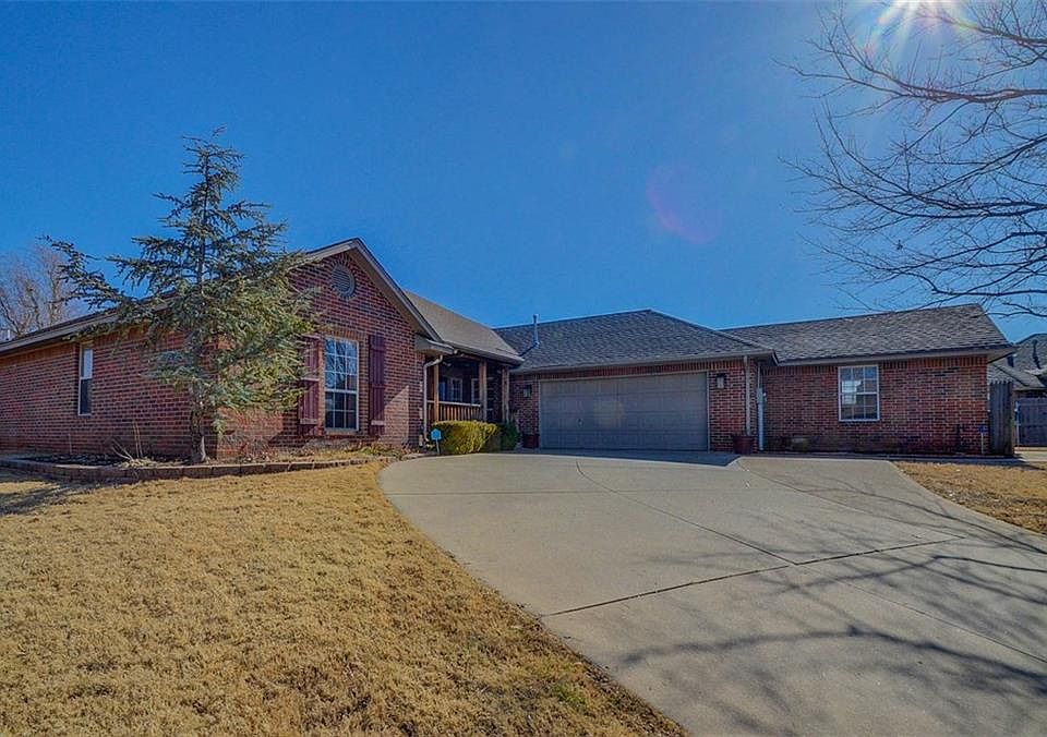 Come look at this beautiful home located near amenities, shopping, and restaurants in Edmond's Hawks Landing neighborhood. This gorgeous home has a modern design and is featured on a large lot in a low-traffic cul-de-sac. This home has a large and bright living space with an open floor plan. The spacious cutting-edge kitchen is equipped with beautiful granite counter tops and has plenty of room for guests. The kitchen wraps into the dining room with a conformable breakfast bar. All three bedrooms are large in size and equipped with ceiling fans. The two bathrooms feature large mirrors and matching granite counter tops. The two car garage includes a recently installed storm shelter and leads to a large (man-cave) bonus room. Hawks Landing neighborhood features a great pool with active lifeguards, playground, and walking trails. Call for your viewing today!