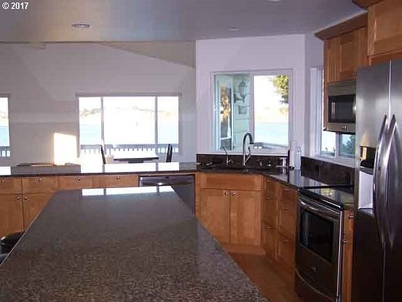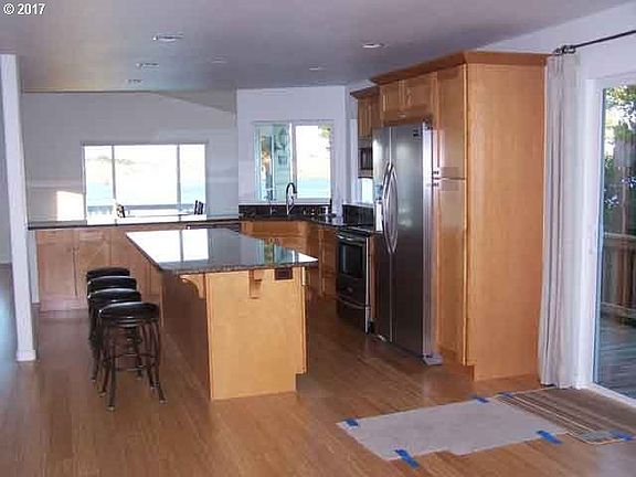Exceptional total remodel. Owner's plans changed but not before rebuilding a beautiful home nestled right on the banks of the Siuslaw River. NEW: windows, roof, bamboo floors & subfloors, kitchen cabinets, granite countertops, SS appliances(unused), bathrooms, jetted tub. Open floor plan with stunning river & dunes view. Private wind protected deck & 2 car garage. You won't find a better waterfront home in Florence for this price.