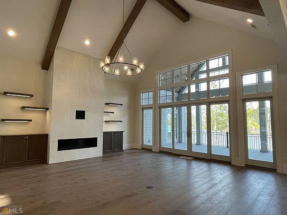UNSURPASSED QUALITY AND HIGH-END DETAILS ARE EVIDENT THROUGHOUT THIS CUSTOM, ONE OF A KIND LAKEFRONT HOME IN REYNOLDS LAKE OCONEE, LOCATED WITHIN THE HIGHLY DESIRABLE RICHLAND CREEKSIDE OF LAKE OCONEE. This luxurious home is ideal for relaxing and entertaining, offering expansive lake views in all directions, 6,536 square feet of unparalleled craftsmanship, with wide plank naturally-aged wire brushed oak wood floors, 7 bedroom and 7.5 bathrooms with custom closets-featuring 7 en-suite oversize bedrooms, 2 owner suites on the main level, and extra-large 7th bedroom/bonus suite over the garage. Thassos & Marble tile and countertops throughout the home, along with 12+ foot ceilings that enhance the main level, highlighted by vaulted/coffered, tongue and groove detail, and beams. Two full laundry rooms - main and terrace level. Two indoor fireplaces -main and terrace level. Wolf/Sub Zero kitchen and bar, and terrace level wet bar package. No detail has been overlooked with your custom lighting package, Open-Cell spray foam insulation and full home Control4 Smart-Home Automation System; which controls lighting, video, sound, AC, pool & spa, and security & cameras. Ready for your whole home generator and elevator. Seller is making a Club Membership Available.