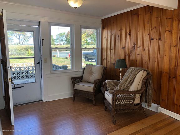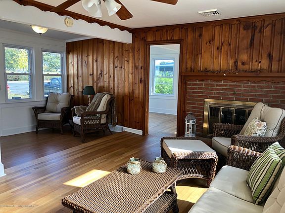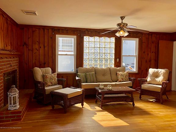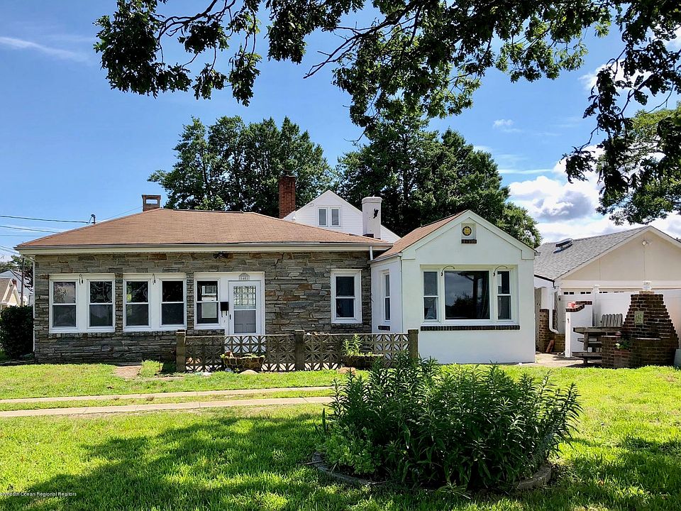 Spectacular views of the Belmar Marina, Sunsets and Sailboats. Cozy ranch is set back from the street and has kitchen, large living room with stone fireplace, dining room,hardwood floors, 2 BRs and one bath. All New ss appliances in kitchen,newer furnace, windows and hot water heater. Kitchen and bathroom recently updated. Pull down attic for storage. Lots of outdoor space to enjoy the water views plus covered side porch. Launch Kayaks, SUP and boats across the street. Walk to L street beach and marina with boat slips. Close to restaurants and train. Great beach house or full time residence. Driveway on Maplewood so no need to back out on highway 35. House is not in a flood zone.