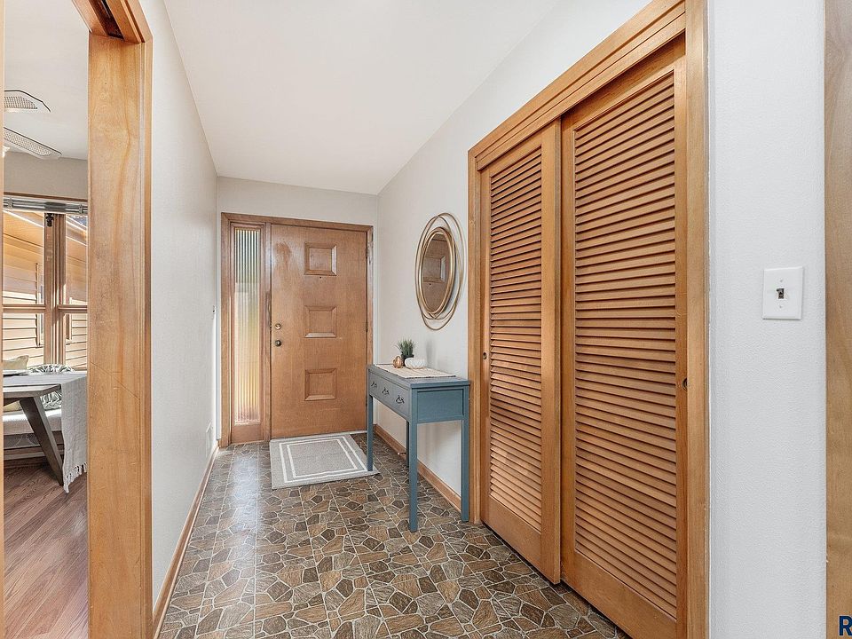 Take a step back in time to this classic ranch with 3 main floor bedrooms, 1.5 baths, custom built in 1959 for Bob Elmen, owner of Elmen Rent All back when Roger Schmitz was the premier Sioux Falls builder. True to its era, it features a formal living room filled with natural light from a full wall of windows, original wood paneling with shelves, and a removable room divider to set the stage for formal dining. The eat-in kitchen, while sporting a new stove, still has the original cabinets and counter for quick breakfasts. The 1568 SQFT unfinished basement is plumbed for a ¾ bath, and features a Malm style fireplace, potential for two more bedrooms, family room, and more. Centrally located near the VA hospital, country clubs, parks, and schools. Will you take this home back to its era of 1960’s or update it to a new modern vibe? Pre-inspected, sold “as is”.