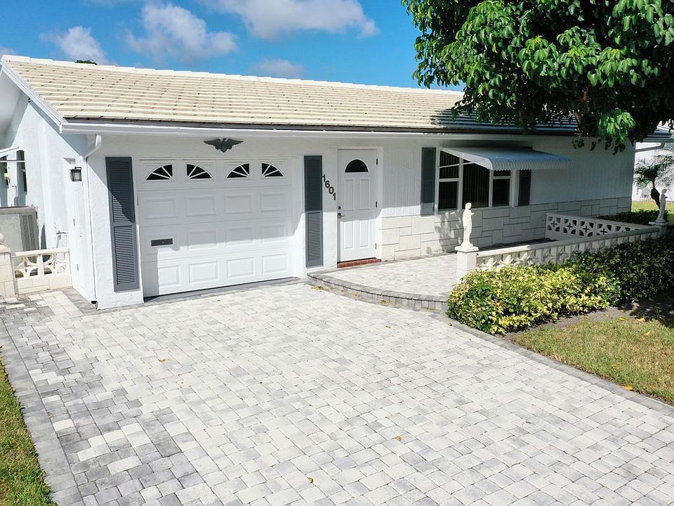 Brand New Listing in Leisureville!!! Enjoy a move-in ready Expanded Challenger Model updated with white kitchen cabinets and granite counters in kitchen and bathrooms, knockdown ceilings and freshly painted. This pristine home has 1,920 sq. ft. and an additional screened in porch with lovely cypress wood ceilings, 2 bedroom, 2 bath home plus a den with built-in bookcases. Lots of wonderful storage and walk-in closets for both bedrooms, pantry and cabinets in the garage with a full size washer/dryer. Boynton Beach Leisureville is a pet friendly 55+ community with a Clubhouses, Heated Pool, a fitness center and a putt-putt Golf Course included in your low monthly HOA's. Close to the beach, I-95 and lots of shopping and restaurants nearby. Come call to view this beautiful home.