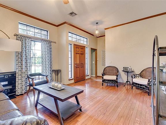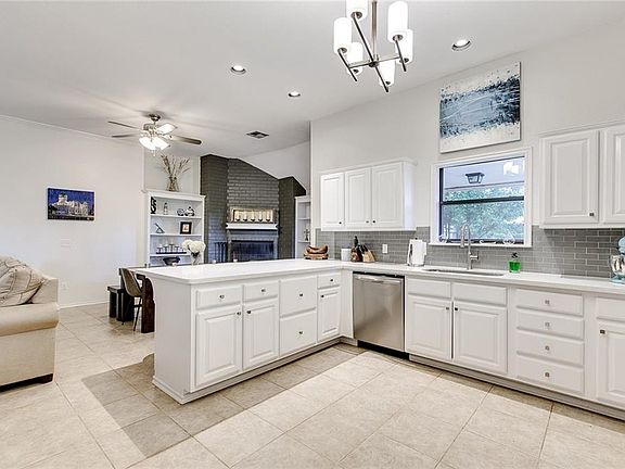 Absolutely charming! This home is move in ready with an updated kitchen, open living space, and corner lot! You are welcomed into the front, living room with wood floors, tall ceilings, and great natural light. The second living room is open to the dining room and kitchen with tile floors throughout. The kitchen is just perfect with white cabinetry, beautiful quartz counter tops, glass backsplash, a gas stove plus great cabinet storage and work space. The dining room is spacious and has a towering, gray fireplace and nice built-ins. Master suite is separated from the secondary bedrooms and it has its own porch. It has a tray ceiling, wood floors, a walk in closet and "spa like" bathroom with two sinks, a tub and shower. The covered patio and back yard are a great place to relax and enjoy some peace and quiet. Fence is mostly new. Don't miss out on this awesome listing!