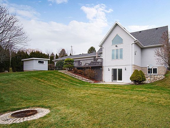 Make this beautiful home yours just in time for spring! Enjoy the sunshine on your deck overlooking your very own pond and open landscaped yard w/ 2+ acres. Have fun entertaining guests in your open concept home with an abundance amount of natural sunlight. Spacious LR includes vaulted ceilings and gas FP. Attached 3 car garage with rock solid flooring as well as an additional shed in your backyard. Kitchen features plenty of cabinet space, walk-in pantry and breakfast bar. MB is on main floor with large master bath and walk-in closet. Upstairs you will find 2 bedrooms, a full bath and open loft. This well maintained property features a newer furnace, walk out basement, aerated pond, main floor laundry and so much more! No worries, home inspection already completed! Quick access to I43!