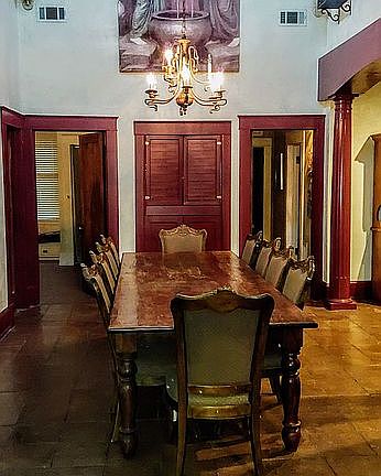 Unique craftsman style. multiple french doors, wood columns, tall ceilings, atrium, hardwood floors on 10 oak covered acres with wet weather creek.