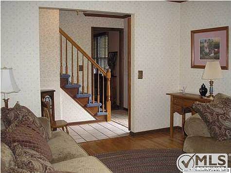 Great condition with upgrades and location close to all major highways. Corner lot, mature landscaping, concrete driveway and charming front porch. Center hall colonial, hardwood floors up/down, eat-in kitchen which opens to dining room and flows nicely into living room, spacious family room, laundry on first floor, and large, dry basement. The backyard has multi-level patio and salt water swimming pool along with a privacy fence.