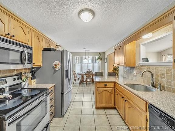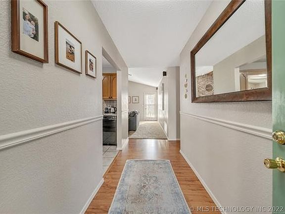 Updated Broken Arrow home featuring: a spacious granite kitchen with abundant storage, vaulted ceilings in LR and Master Bdrm, large master suite with double vanity and 2 walk-in closets, and in-ground storm shelter in backyard. Neighborhood walking trail and park across the street with sidewalks throughout the neighborhood. New HVAC (2022), carpet (2019), furnace (2015) and hot water tank (2015).