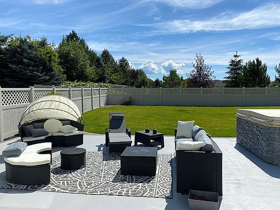 Deal Pending. Best deal in the Valley! Less than $135 per sq ft, it's priced to move. Set in the middle of a 1 & 1/4 acre park-like lot. Landscaped to the nines with low maintenance, fully irrigated, well and city water, circle drive, colorful, deliciousness from apples, plumbs, apricots and grapes to raised garden beds full of herbs and veggies, bursting with perennial treasures set to bloom from early spring to late fall. Features a gorgeous waterfall, large chicken coop/storage shed, troll house, fire pit, gazebo, and lovely patio perfect for entertaining. On sight is a 2000 sq ft insulated shop with loft for storage, wood stove, fan, auto repair pit and lots of paved space to the side for RV parking and an onsite RV waste dump. The home itself is a must see. Almost entirely floored with tile and granite that blends with any decor. Freshly painted inside and out, new roof. This place defies description. Main floor features 3 spacious rooms with plenty of natural light. One of the rooms is a suite that includes a bathroom with a walk-in shower and a sauna. It is perfectly equipped and spaced for other abled folks that might have problems with stairs or need wide openings, lots of windows with mountain views. Along with the two other bedrooms on the main floor there is a centrally located full guest bathroom, huge living room with gas fireplace, dining room, study and a lovely kitchen geared for economy of movement, huge baker’s pantry, spacious laundry that opens to the cutest greenhouse/mud room. Upstairs consists of two full suites, one with lovely sunrise and mountain views and other with magical, dappled sunset light. The master bath features a fully enclosed steam shower. The 1,200 sq ft basement contains a hidden storage/entertainment room (secret bookshelf entry door!) A full apartment includes kitchen, laundry, bedroom and living room with interior and exterior access. This place is perfect for housing in laws and outlaws or air B&B basement space for extra income. We would love to show you. Call for an appointment. We are selling without a realtor so we can give you a better price. Come with an offer.