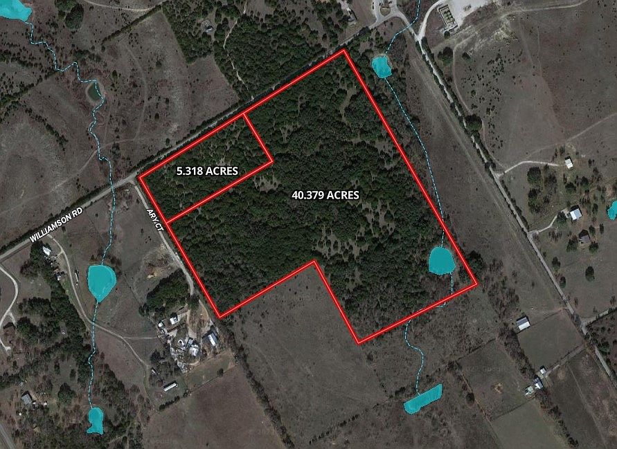 DEVELOPER'S DREAM!!! 6.3 miles from the Granbury town square this 45+ acre property has over 1400 feet of frontage on Williamson Rd. This land is not in within the city limits of Granbury nor the ETJ. Water wells and septic systems can be utilized on a plan that has lots greater than 2 acres each. A mix of cedar, big oak, and other large hardwoods along with a half acre+ stock tank in the south east corner