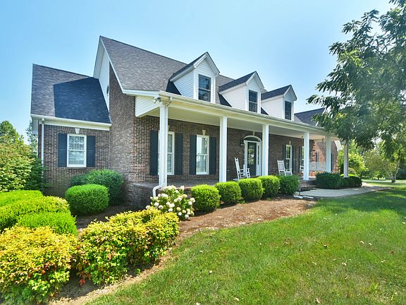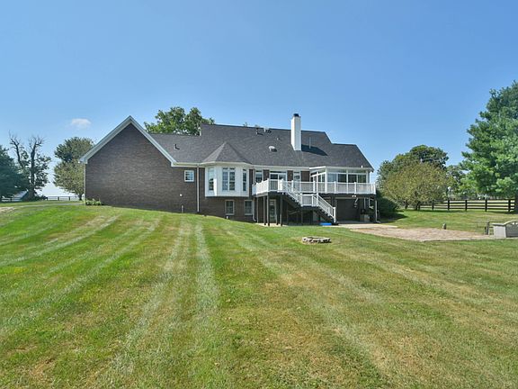 Country living just minutes from the city! You will love the upgrades made to this charming estate sitting on just over 5 acres. You'll love evenings sitting on the front porch. First floor features a large master suite with sunroom attached, hardwoods throughout first level and boasts lots of natural light. Kitchen has been upgraded with a farm sink, quartz countertops and stainless steel appliances. Second floor features 2 large bedrooms and a shared bath. Large walkout basement offers a mother-in-law suite and spacious den. Lots of storage/closets, auxiliary garage located in basement, New roof installed in 2016 and the water heater was recently replaced. Attached 2 car garage and a large detached 3 car garage with workshop! Just a short drive from all Lexington has to offer. Schedule your private showing today!