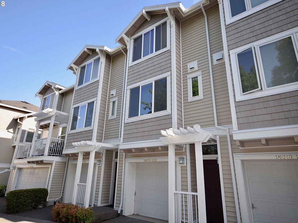 Efficient, open condo conveniently near Nike, Intel, shopping, Max line, TV Nature park, dining. Great privacy with no buildings in front or behind. No pending litigation or assessments per HOA, and no rental cap (buyer to verify). All appliances are offered with purchase including range, refrigerator, and stacked washer & dryer. Large tandem garage with storage. Covered patio w/ deck above. Professionally cleaned and move-in ready.