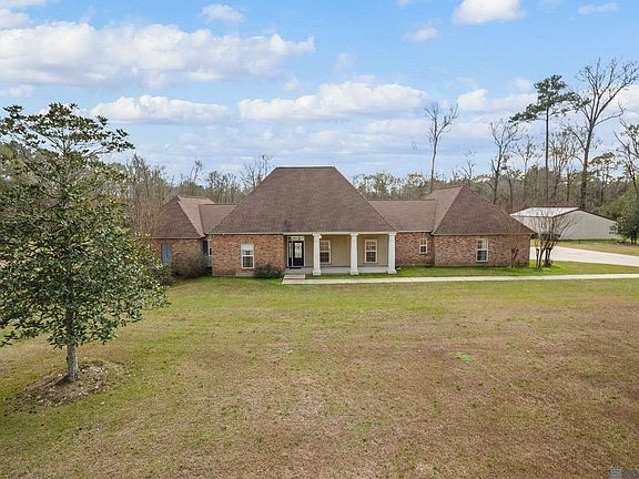 COUNTRY LIVING at it's best! This well maintained spacious home offers 3550 sf of living area and is situated on 8.41 beautiful ACRES of usable land, plus a POND. The home has a 3yr old roof, whole house GENERATOR, central vacuum system, 2 large WORKSHOPS, tons of covered storage and features 4Bedroom and 3 full bathrooms. The large 4th bedroom is remote from the others and could be used as an office, craft room, homeschool room, etc, if a 4th bedroom isn't needed. The den, dining room and kitchen are open & airy and offer plenty of living space for family gatherings. The kitchen has an oversized island, custom cabinets galore, granite countertops and a gas stove. The spacious den features a gas log fireplace and custom-built wood bookshelves surrounding the fireplace with a wall of windows looking out over the backyard & pond. The large master suite has an en suite bathroom with 2 huge walk-in closets, separate tub & shower and a coffee bar with mini-fridge. Plus the master suite has an attached sitting area with wndows all around that's perfect for a sunroom or sitting area. Outside is as impressive as inside with two huge workshops (40x20 and 32x24) perfect for the handyman and all the outdoor projects. And bring your fishing pole to enjoy the pond on those spring and summer days. Flood insurance is not required for the home. Just minutes from shopping, restaurants, churches, medical facilities, etc. in Zachary and Central. Too many custom features to mention, so call today for your personal tour!