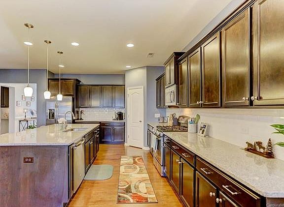 Charming home near downtown Huntersville! Only 2 years old, all stainless steel appliances included in gourmet kitchen w/ large granite island & gas stove! INCREDIBLE OUTDOOR LIVING w/covered porch, built in outdoor kitchen area, wired for TV, & stone fireplace! Home also features a fenced yard, shed, HUGE master bedroom, bath, & closet, loft with built in shelves & desk, large bonus room, master on main level, open floor plan, & an additional bedroom on main level w/ unlimited possibilities!