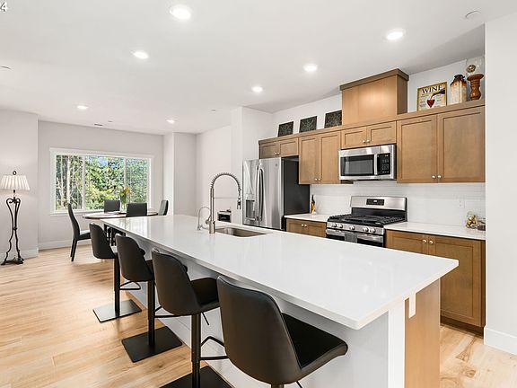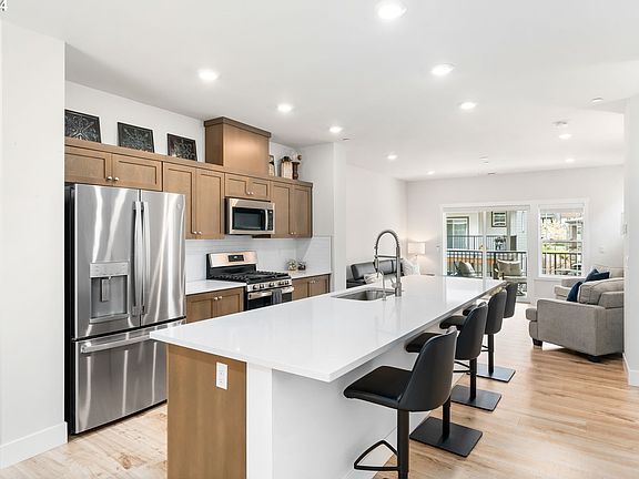 - Features: Dishwasher, Great Room, Island, Microwave, Free Standing Range, Free Standing Refrigerator, High Ceilings, Quartz, Vinyl Floor