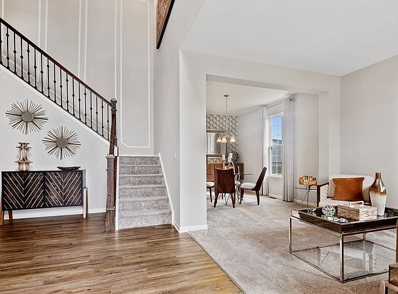 A wonderful water view with no neighbors behind you as you overlook the naturalized basin in an established neighborhood, North Point at Springbank. This 4 bedrooms, 2 & 1/2 baths a 3 car garage home has a no dead zone wi-fi system with wireless touch entry, a video doorbell, a smart thermostat, a wi-fi garage door opener. The 1st floor has 9' first floor ceilings & a two-story foyer greets you as you walk in. The Kitchen has quartz countertops, single bowl under-mount sink, island with pendant lighting, spacious pantry, 42" white Aristokraft cabinets, stainless steel refrigerator, gas range, dishwasher, and microwave with another path back to the front door. The Kitchen is open to the breakfast area and family room that has 4 LED surface mount lights and fireplace. The owner's suite with a stepped ceiling. The owner's suite includes a private bathroom with a walk-in shower with a seat, water closet, double-bowl vanity, and a large walk-in closet. A full basement gives you plenty of storage. A fully sodded, landscaped yard. all of this in Plainfield School district at North Point at Springbank that features walking paths, playground, basketball court and is walking distance to Springbank Aquatic Center. Nearby is hiking at Mather Woods Forest Preserve while minutes to downtown Plainfield with its amazing dining. Shopping north and south on rt 59. Major Transportation Corridors are near such as I-80, I-55, and I-355. Pace park and ride is in Plainfield and train stations are nearby in Joliet, Romeoville, and Naperville for any mass transit need. Buy new with builders extensive warranty & energy efficient features! Call to set your appointment on lot 246 today to be ready to move in May 31st. Pictures shown are that of a Galveston Model and not property.