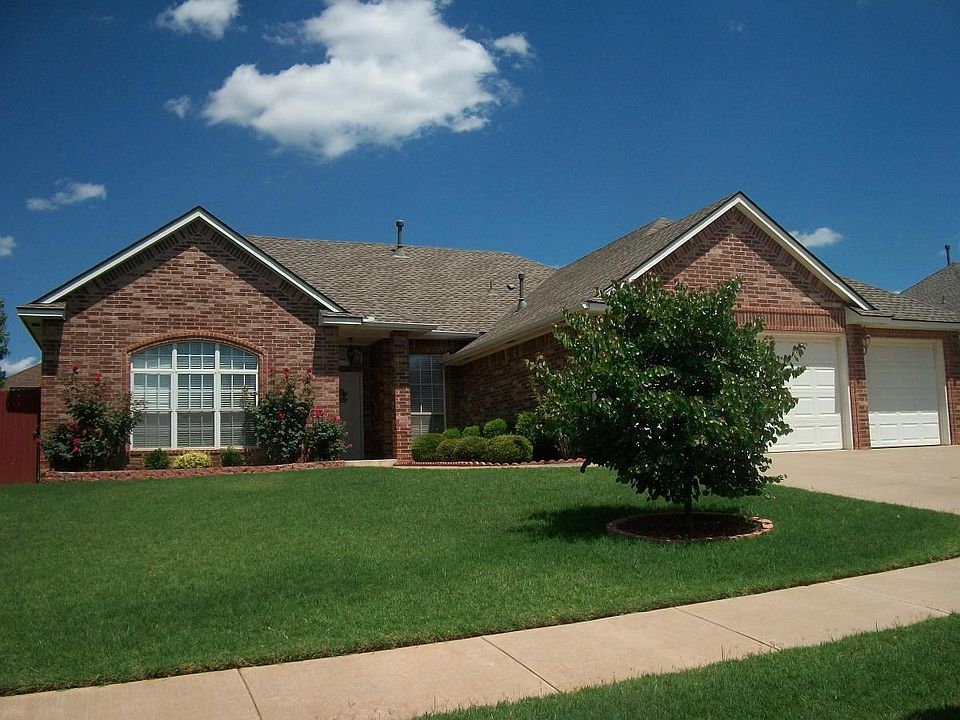 This home in Sheffield Glen located in Edmond, Oklahoma is a beautiful 3 bedroom 3 bathroom 3 car garage. There is an office with beautiful built-in cabinetry from ceiling to floor along with lovely French doors. There is a fireplace in the main living room and the additional living area has a walk-in closet with built-in shelving. The kitchen comes with a dishwasher, electric stove, and a built-in microwave. The large laundry room with a sink, large cabinets for storage, and washer and dryer connections. The master bedroom has a huge bathroom with a double vanity, jetted tub, and his and her walk-in closets with built-in shelving. There is a tornado shelter in the garage and the backyard is fenced in with a covered patio. Enjoy the community swimming pool and park. Do not miss out on this fantastic property! Call today to schedule a tour!