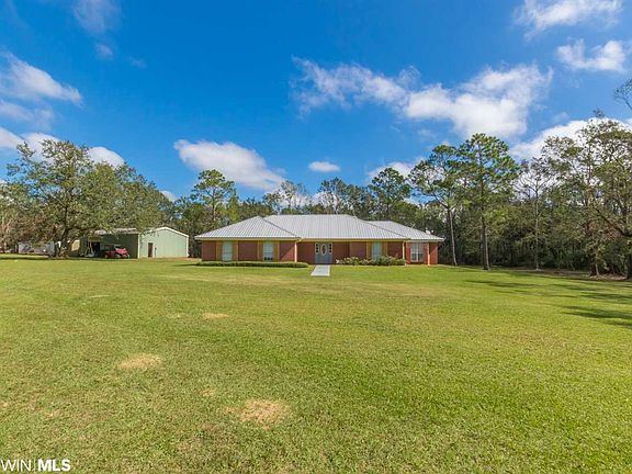 5.6 Acres + 2,900 sf brick home with new HVAC and metal roof in 2018 + 30x40 Red Iron steel workshop with 10' roll up door full slab centrally located in Foley now available... and BONUS garage has been converted to a fifth bedroom/in-law suite with full bath and private entrance! Home has a total of 5 bedrooms and 3 baths. Living area features beautiful wood accent beams and a cozy wood burning fireplace. The split floor plan provides privacy for the master, while the master bath renovation will have you swooning! Double vanities with granite, separate make-up table, large walk-in tile shower with pebble rock and dual shower heads complete this luxury bath! The kitchen boasts granite as well, with a beautiful tile backsplash and all appliances will convey! Outside, you'll love the privacy and serenity that this setting offers... perfect for bbqs and entertaining! This property truly has it all. Don't let it pass you by!