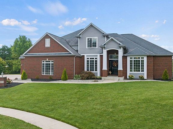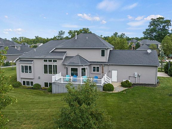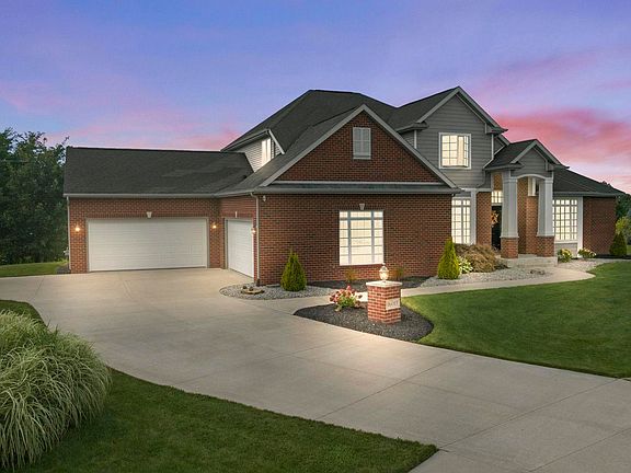 Check out this captivating 5 bedroom, 3.5 bathroom, nearly 5,000 sq ft home, located in the prestigious Twin Eagles subdivision and just steps away from the scenic Pufferbelly Trail. Prepare to be amazed by the expansive kitchen, perfect for hosting and entertaining. With it's custom built cabinets, granite countertops, double oven, 2 sinks, and two generously sized pantries for ample storage space, this kitchen is a chef's dream come true. The master suite is a true oasis located on the main level, featuring a spacious master bath with a double vanity, a huge walk-in closet, and a luxurious custom tile shower complete with a built-in Thermosol steam unit. The dedicated office space comes complete with custom cherry wood built-ins, providing a productive and elegant workspace. The rooms throughout the house are generously sized, and for added convenience, with laundry rooms on both the main and upper level. Benefit from efficient geothermal heating and cooling for year-round comfort. Cozy up in front of one of three fireplaces scattered throughout the home. The fully finished basement includes a kitchenette/bar area for entertaining and relaxation. Keep your furry friends clean with a convenient doggy shower in the spacious 4-car garage and keep them safe and secure with an invisible fence. You will never worry about power outages with a whole-house generator and easily maintain the vibrant lawn with the built-in irrigation/sprinkler system. This home is truly a masterpiece that offers a lifestyle of luxury, convenience, and comfort, with an impressive list of amenities that cater to your every need. Don't miss the opportunity to make this your forever home!