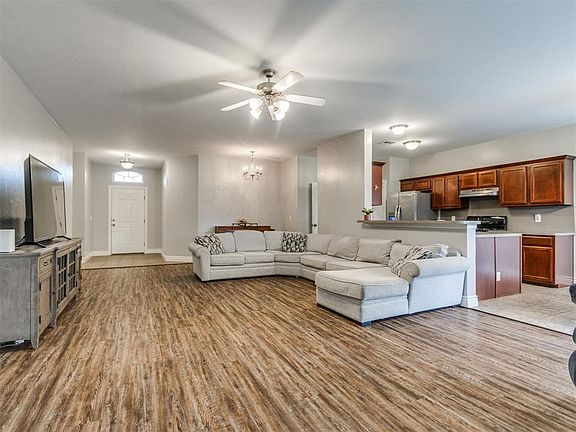 Welcome to this beautifully maintained 4-bedroom, 2-bathroom home in the highly sought-after Sonoma Lake Addition in Edmond. Offering 1,842 sq. ft., this home combines thoughtful updates with a functional floorplan, perfect for families or individuals. From the moment you pull up, you’ll notice the fantastic curb appeal, highlighted by a brand-new 2025 roof and tidy landscaping. Step inside to find a bright, open layout with large windows that fill the home with natural light. The spacious living room features a cozy fireplace with a classic mantle, creating a warm gathering space for entertaining guests. The kitchen is a chef’s dream with stainless steel appliances, ample cabinet space, and easy access to the dining area—ideal for weeknight dinners or hosting friends. Hard flooring in high-traffic areas makes upkeep simple, while carpeted bedrooms provide comfort. The primary suite is a standout, featuring his-and-her vanities, a soaking tub, a separate standing shower, and a walk-in closet with built-in drawers for organization. The additional three bedrooms are generously sized and share a well-designed guest bathroom. Step outside to enjoy a private backyard that’s perfect for grilling, playing, or just relaxing after a long day. Living in Sonoma Lake means you also have access to the community pool and a picturesque neighborhood lake, offering a true sense of community and a beautiful setting. With its blend of updates, a practical floorplan, and neighborhood amenities, this home is ready for its next owners to love. Don’t miss the opportunity to make it yours—schedule your showing today!