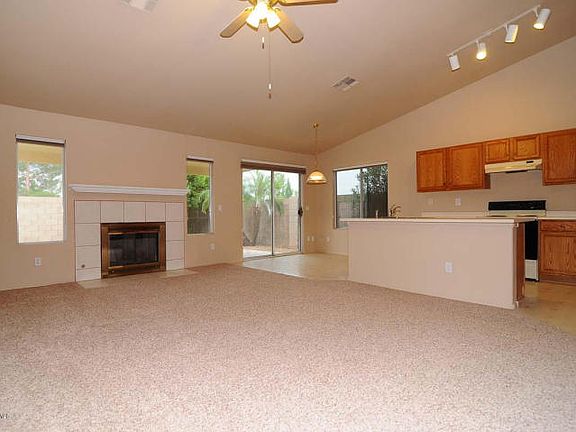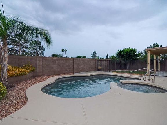 Clean and well-maintained home has an open floor plan. Great-room concept offers vaulted ceilings and island kitchen that opens to family room. New carpet and paint throughout and fireplace in family room. Spacious master bedroom features walk-in closet, full bath with separate shower and tub and dual sinks. Beautiful backyard with a pebble finish pool and spa, small grassy area and covered patio. 3 car garage with built in cabinets. Great neighborhood with NO HOA, playground and sports court. Close to the Loop 101, Arrowhead Mall and restaurants.