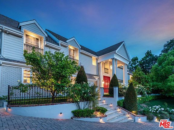 This is where everyone wants to live - Magical Woodvale Road. The prime location in coveted Royal Oaks. Surrounded by $18M estates, this grand traditional offers every luxury amenity. Private hedges and a secure gate offer security. The long wide driveway gently slopes far up off the street, past the massive flat grassy lawn with a gorgeous sun-drenched pool and the Guest House that offers a full bathroom and kitchen. One of the largest flat yards on this fabled street, this is where soccer games or weddings with hundreds of guests are comfortably seated in this pavilion surrounded by towering shade trees. The house with its timeless classic Colonial design has a large circular motor court which is perfect for playing basketball, a three car garage and gorgeous public rooms designed for gracious entertaining. The open floorplan features a large kitchen with center island and bar stool seating adjacent to a breakfast nook with high-pitched ceilings. An elegant 10-seat formal dining with ample natural light thru the charming windows is ideal to host large family dinners. There's a gorgeous step-down living room with a stately marble fireplace mantle, framed by large walls that accommodate a great art collection. One of the best primary suites available features two walk-in closets, high-pitched ceilings highlighted by a skylight, close to secondary bedrooms, and an enormous gym with its own private balcony that overlooks the backyard and the tree studded private yard. The flexible floorplan has two junior suites on the second floor, two en suite bedrooms and a great home office on the main floor. The maid's room off the kitchen can also be a huge mud room. Through a secret hidden door there is a finished attic where the entire classroom can sleep over. It's so great to have all your kids there in the house for those memorable weekends. This is rare opportunity to acquire a large remodeled home on the valley's premiere street.