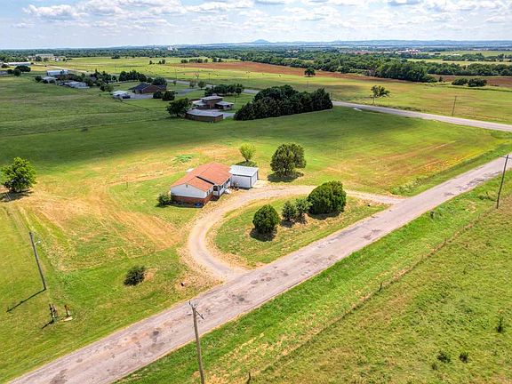 Country home on 5.5 acres. This is a fantastic opportunity to have a home with approximately 1600 square feet on some acreage. A modest home which offers 2 bedrooms, 2 bathrooms, oversized family room, 2 dining areas, galley style kitchen, laundry room and a two car garage. Originally it was a 3 bedroom home and the family opened up the third bedroom to make the family room oversized. It could easily be returned back to a 3 bedroom as it was. Propane wall heat, window a/c units, septic system, rural water is in Carnegie OK. Nice shed stays and even an old tractor could stay if the buyer should like to have it. Many folks dream of having a little bit of land. Situated on a corner you could build another home, a shop, or have some animals. A chance to buy in at this price point definitely should get your attention and when you see it, you will be very pleased! Due to the pricing, the seller’s will not do any repairs, improvements or upgrades, please keep that in mind. Call and get your appointment to see this offering.