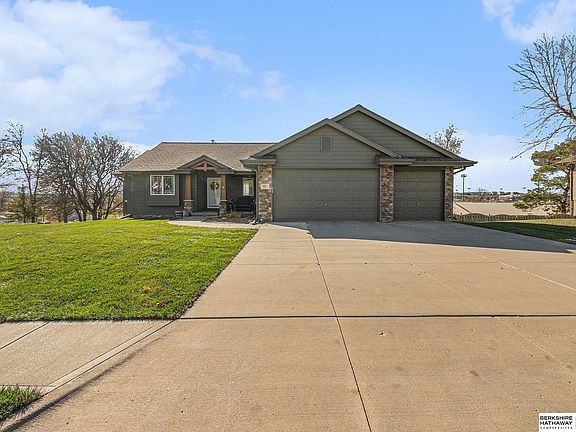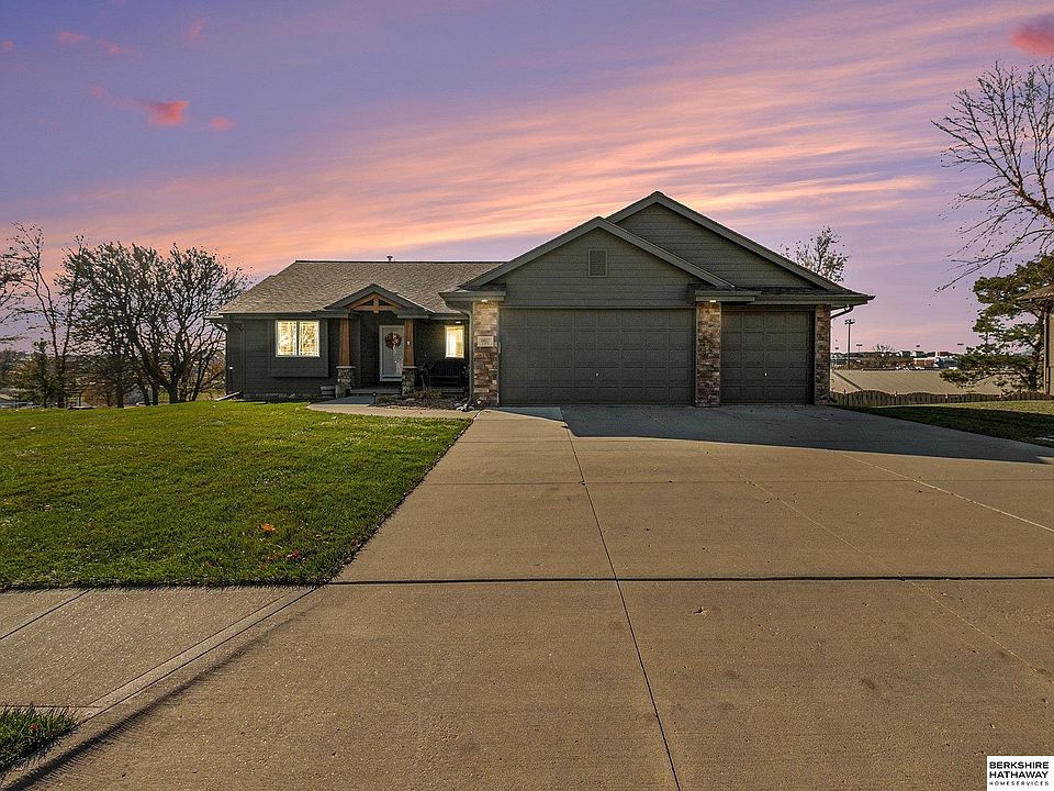 Discover this beautifully maintained custom ranch home in the heart of Bennington. Offering 2,853 sq ft of comfortable living space, this 4-bedroom, 3-bath home includes a 3-car garage w/ 8-foot doors, New ROOF & perfect for truck, or ATV. The gourmet kitchen combines upscale finishes w/ everyday functionality, featuring wood floors, granite countertops, serving bar, dining area, and pantry w/pull-outs. Vaulted ceilings & open-concept layout make this home ideal for entertaining & modern living. Main floor includes a spacious primary suite w/dual sinks, walk-in closet, along with two additional bedrooms, laundry, & living room centered around a stone fireplace with a one-of-a-kind mantel. The finished walk-out basement offers incredible versatility, featuring a fourth bedroom, ¾ bath, wet bar, and patio, perfect setup for guests, teens, or game-day gatherings. Exterior highlights include Smart Board siding, a newer deck, private backyard, & walking trails. Move in ready!