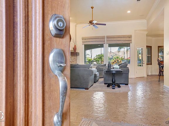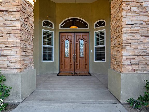 This home is built to entertain!! This single story, split wing Silver Oak Ranch home has custom features galore! The large double doors lead to an open concept living space w/beautiful custom stamped concrete flooring & extremely generous ceilings. The formal sitting or dining & the great room stretches out to meet a lg open kitchen w/breakfast bar + dining area. The kitchen features stainless appliances including beverage fridge, granite counters & plenty of space. The en-suite is very good sized & has windows that look out onto the pool & patio; there are sep closets as well as sep sink spaces & sep tub & walk in shower. The exterior has lg L-shaped patios that connect the main house to the detached bonus room w/wet bar & lots of room! Built in outdoor grill, 4 car garage and RV parking, 500 gallon above ground spa, and OWNED SOLAR! Bring your picky buyers! This one is a gem!